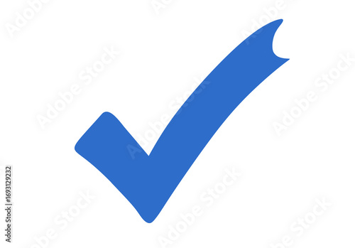 Blue check mark symbol indicating confirmation, approval, or completion, isolated on transparent background