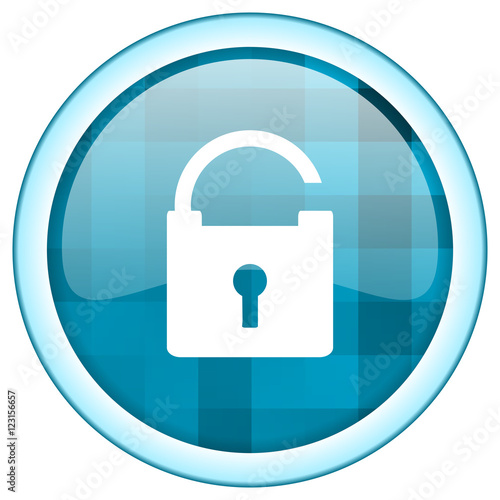 Blue circle padlock vector icon. Round internet secure glossy button. Webdesign graphic element.