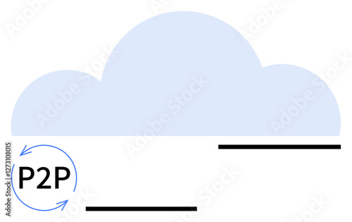 Blue cloud above black lines with P2P text inside a circular arrow. Ideal for data sharing, collaboration, cloud technology, networks, digital storage, peer-to-peer concepts, abstract line flat