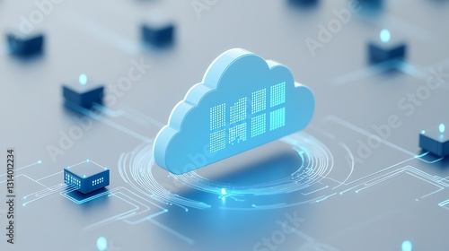 Blue Cloud Computing Icon with Data Connections and Digital Elements for Technology and Innovation Concepts