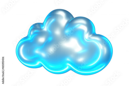 Blue cloud computing symbol glowing on transparent background, representing online storage and network connectivity