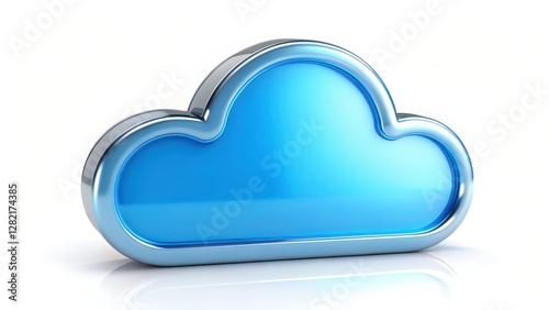 Blue Cloud Icon, 3D Render, White Background