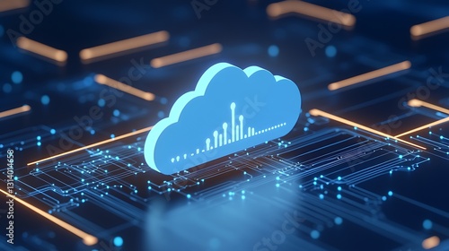 Blue Cloud Icon Over Digital Circuitry Background Representing Modern Technology and Data Analysis Solutions