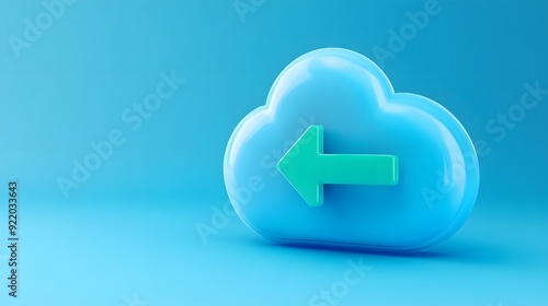 Blue cloud icon with a green arrow pointing left, symbolizing cloud storage, data backup, and digital technology on a blue background.