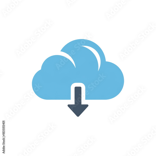 Blue cloud icon with downward arrow on transparent background