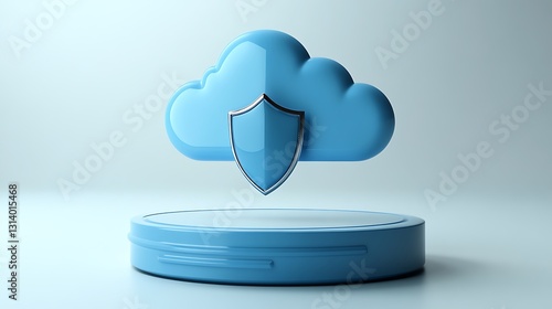Blue Cloud Icon with Shield for Data Security Concept in Digital Technology