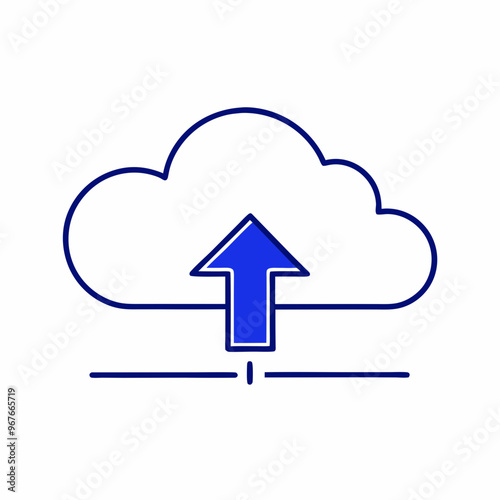 Blue cloud icon with upward arrow representing uploading and cloud storage concept.