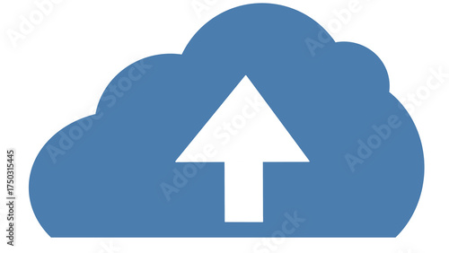 Blue cloud icon with upward arrow, upload button, data transfer symbol
