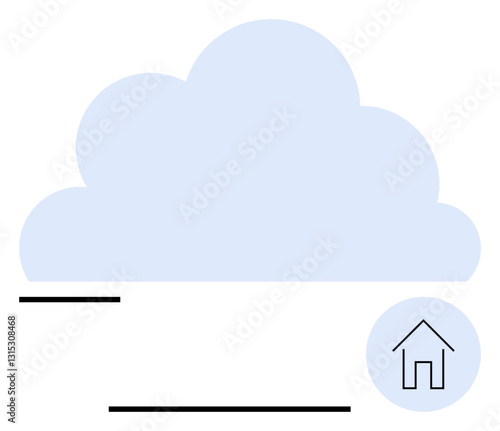 Blue cloud representing digital storage and a simple house icon conveying connectivity, security, and technology integration. Ideal for cloud computing, home automation, security, data storage