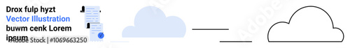 Blue cloud, text document, and cloud outline are perfect for data storage, digital services, tech blogs, web design, educational platforms, presentations, and infographics. Landing page