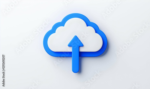 Blue Cloud Upload Icon on White Background for Technology Concepts