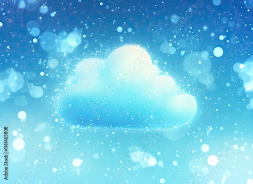 Blue cloud vector illustration on a white background, with a bokeh effect