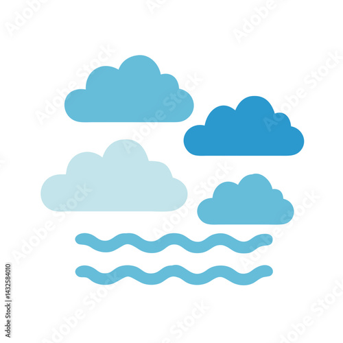 Blue Clouds and Water Waves Icon on Black Background