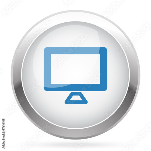 Blue Computer Screen icon on white glossy chrome app button