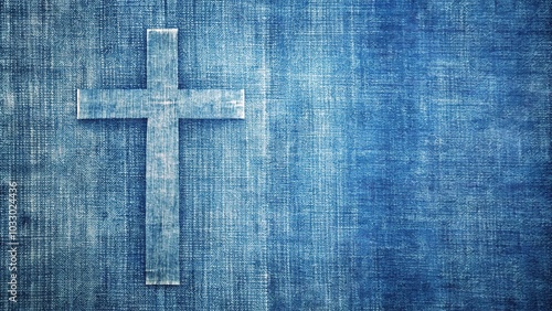 blue denim textured cross with scratched canvas painting background