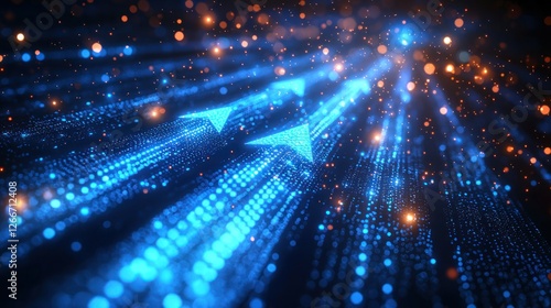 Blue digital arrows soaring through sparkling particles, ideal for tech presentations
