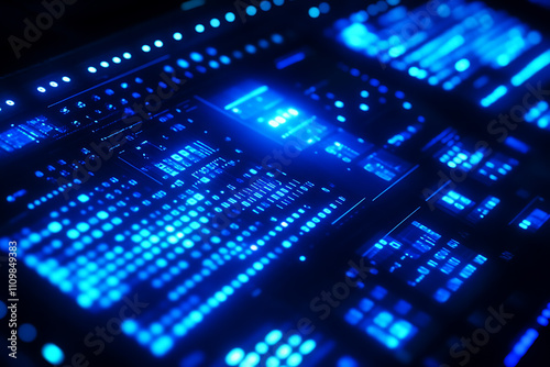Blue digital binary data on a computer screen, creating a futuristic, high-tech atmosphere with flowing numbers and abstract patterns