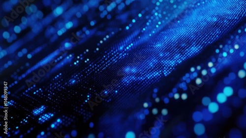 Blue digital binary data on computer screen background
