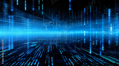 Blue digital binary data on computer screen background