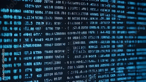 Blue digital binary data on computer screen background