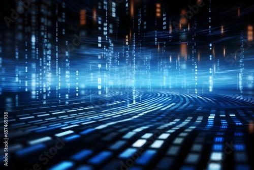 Blue digital binary data on computer screen background. generative ai