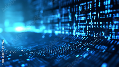 blue digital binary data on computer screen. Close-up shallow DOF.