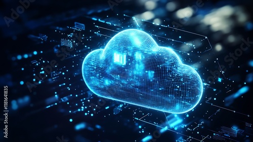 Blue Digital Cloud Computing Matrix Illustration with Futuristic Touch : Generative AI