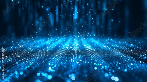 Blue digital particles falling, futuristic background, technology concept, website banner