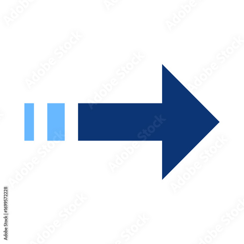 Blue directional arrow icon pointing right with a dashed line.