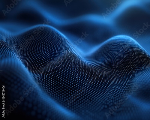 Blue dot grid forms undulating 3D surface, abstract digital backdrop, for web use