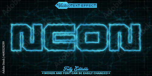 Blue Electric Neon Vector Editable Text Effect Template