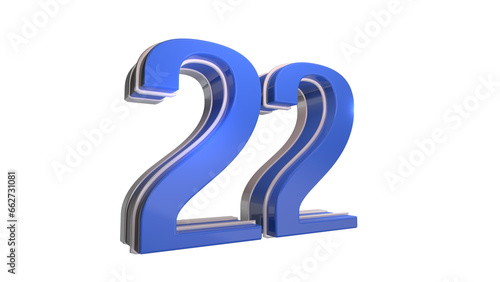 Blue glossy 3d number 22