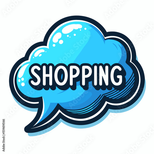 Blue glossy speech bubble with SHOPPING text