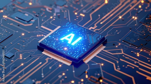 Blue glowing chip with the letters "AI"