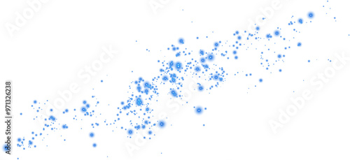 Blue glowing light effect with many glitter particles. Starry cloud with dust. Magic christmas decoration. Luminous bokeh softly shimmering blue light. Light abstract glowing lights. PNG.