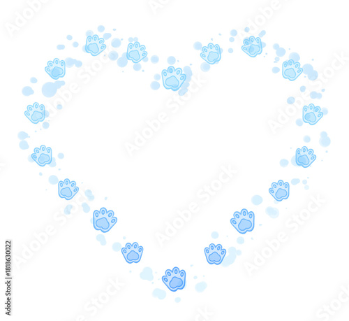 Blue heart paw print frame paint splatter