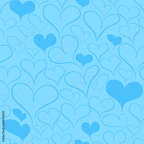 Blue Heart Seamless Pattern Veector Design