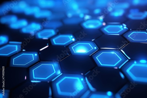 Blue hexagonal background with abstract technology theme.