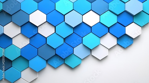 Blue Hexagonal Pattern with 3D Effect on a Light Background