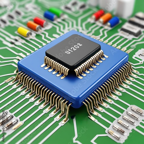 Blue Integrated Circuit Chip on Green Circuit Board