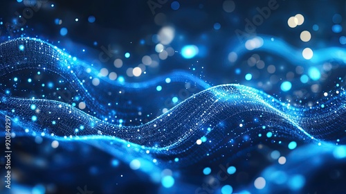 Blue line connection dots wave. Molecule background with DNA. Network concept with dots and connecting lines. Modern technology elements.