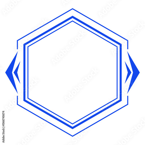 blue line hexagon frame and arrow inside