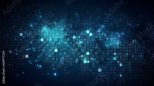blue matrix cube glow background ,futuristic abstract graphic ,generative ai