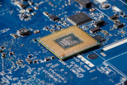 blue microcircuits electronic Computer security, IT technology neural networks Macro close up circuit board texture.