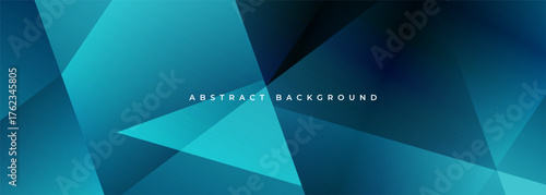 Blue modern abstract wide banner with geometric shapes. Dark blue abstract background. Vector illustration