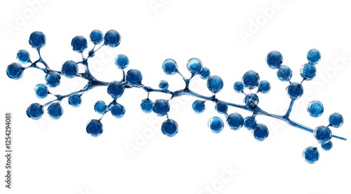Blue molecule network, 3D render, science, white background, medical illustration