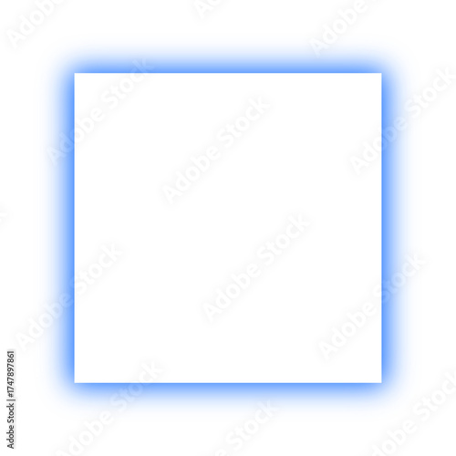 Blue neon glowing square frame isolated on transparent background