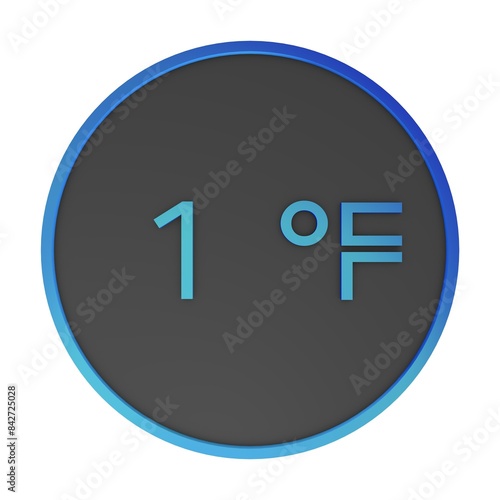 Blue number one in a gray circle on a white background isolate. Degrees Fahrenheit. Air temperature. Rendering illustration.