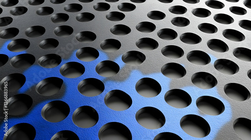 Blue paint on perforated metal sheet