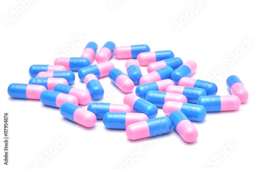 Blue pills on white background